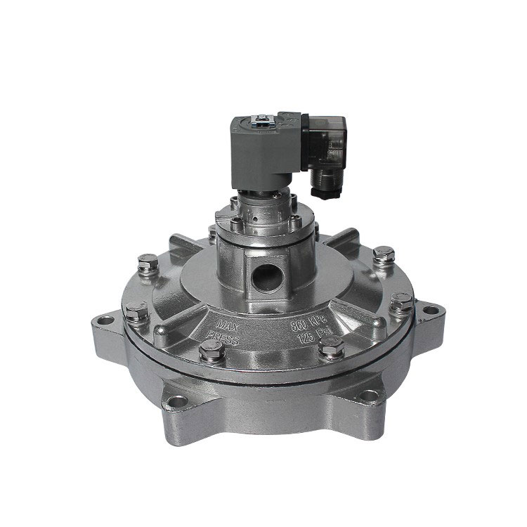 Оның сипаттамасы тік бұрышты клапанның ауа кіретін және шығатын құбырлары 90 ° бұрышта орналасқан. Клапанның корпусы мен қақпағы алюминий қорытпасының материалы арқылы құйылған. Беттік өңдеуден кейін олар тамаша коррозияға төзімділік көрсетеді. Диафрагма мен тығыздағыш тығыздағыш вулканизацияланған композициялық процесті қолдану арқылы шығарылады. Электромагниттік ұшқыш басына арналған шикізат жоғары тиімді магниттік материалдардан және тот баспайтын болаттан жасалған магнитті қорғайтын материалдардан тұрады. Серіппелер мен бекіткіштер сияқты маңызды компоненттер баспайтын болаттан жасалған. Қосылу әдісі: Ауа таратқышы (ауа резервуары) құбыры және шаң жинағыштың үрлеу құбыры сәйкесінше клапанның кіріс және шығыс тесігіне кіргізіліп, екі жағынан қысқыш гайкалармен тығыздалған.